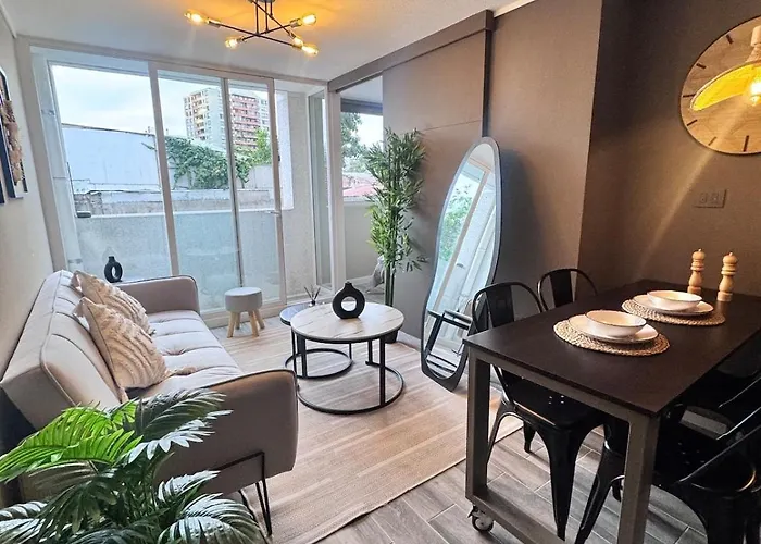 Departamento A Pasos Del Metro Y Estado Nacional Santiago apartment is located in the Nunoa district of Santiago, in close proximity to Parroquia de la Santa Cruz. At the apartment, Wi-Fi and private parking are also provided.
